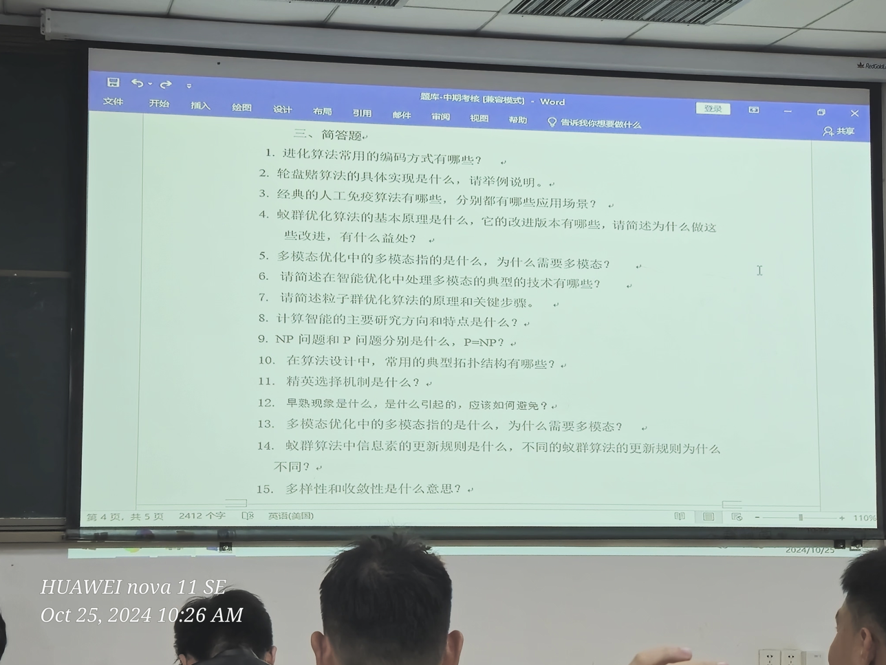 计算智能期中题总结# 填空题 旅行商问题的时间复杂度为 O(n!)。 对于最优化问题,其一般形式为: min f(X) s.t. {gi(X) ≥ 0 i=1,2,...发布于 2024-10-27test
